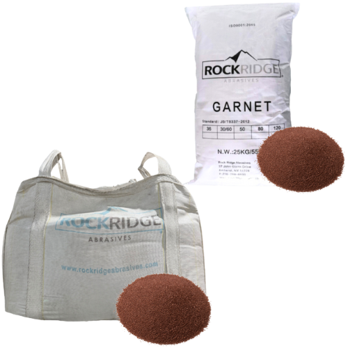 Garnet is common used in many applications because of its fast cutting ability. Largely used for waterjet cutting and powder coating surface prep.